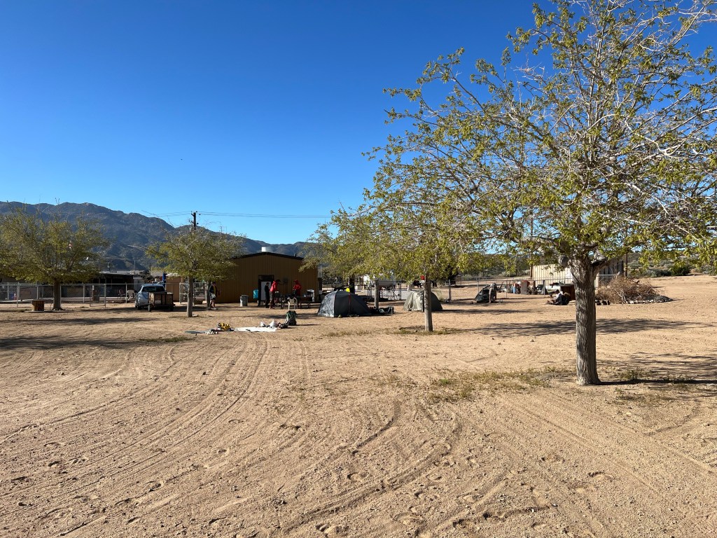 Revenons à notre aventure au Joshua Inn. Une affiche nous invite à les contacter pour que quelqu’un vienne nous chercher. À ma compréhension, cette place, c’est un “Deli”, un endroit où l’on prépare des sandwichs, nous en retrouvons souvent dans les épiceries et dépanneurs. L’affiche indique aussi que nous pouvons y passer la nuit dans notre tente. À peine quelques minutes après avoir raccroché, 2 jeunes filles, mineures à mon avis, arrivent dans un gros “pickup” blanc très luxueux. Nous montons à l’arrière. Nous roulons quelques minutes et arrivons à un endroit qui ressemble plus à un bar qu’une épicerie. Dehors, il y a plein de gens, le stationnement est rempli de gros “pickups” avec des “dirt bike” dans la boîte. Un “dirt bike”, c’est ce que nous appelons généralement un motocross. Nous descendons et scrutons l’endroit, nous sommes perplexes. On aperçoit une tente dans la cour sur le côté et aussi il y a plusieurs sac à dos accolés au mur. Nous laissons nos sac avec les autres. On se dirige à l’entrée du bar, la porte est ouverte, on entre et ont reste figé dans le seuil de porte.