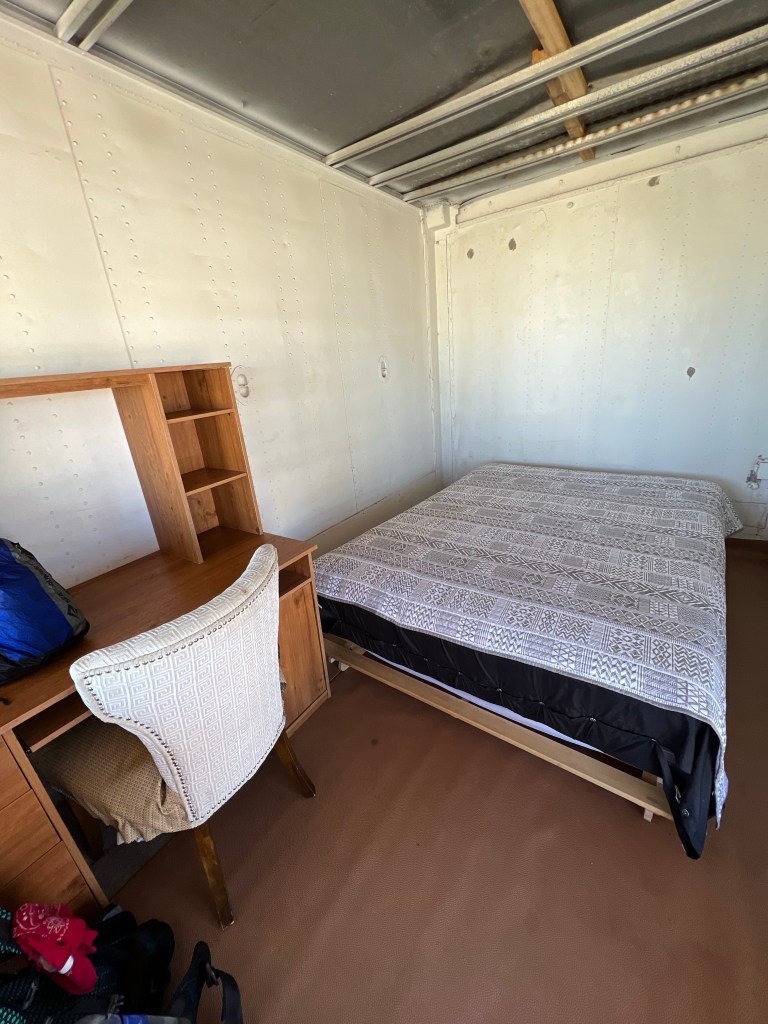 Que dire de Hiker Town, d’abord ce n’est pas une ville. C’est une résidente de Lancaster, qui a aménagé un petit village sur sa terre. Nous y retrouvons l’hôtel de ville, la banque, un saloon, une prison, etc. Ce sont des petites cabines, des conteneurs, avec une façade de bois. Habituellement, ce petit village est rempli de randonneurs, mais pour nous, c’est presque vide. L’endroit est un peu kitsch et sketchy, et surtout très drôle à voir. La propriétaire, une hispanique, semble travailler très fort pour maintenir ce site. Comme à l’habitude, les gens sont très accueillant. Nous avons quelques discussions avec d’autres randonneurs qui marchent une section, nous décidons de prendre une cabine pour la nuit, nous avons choisi l’hôtel de ville. Finalement, bon choix, la nuit a été très venteuse.