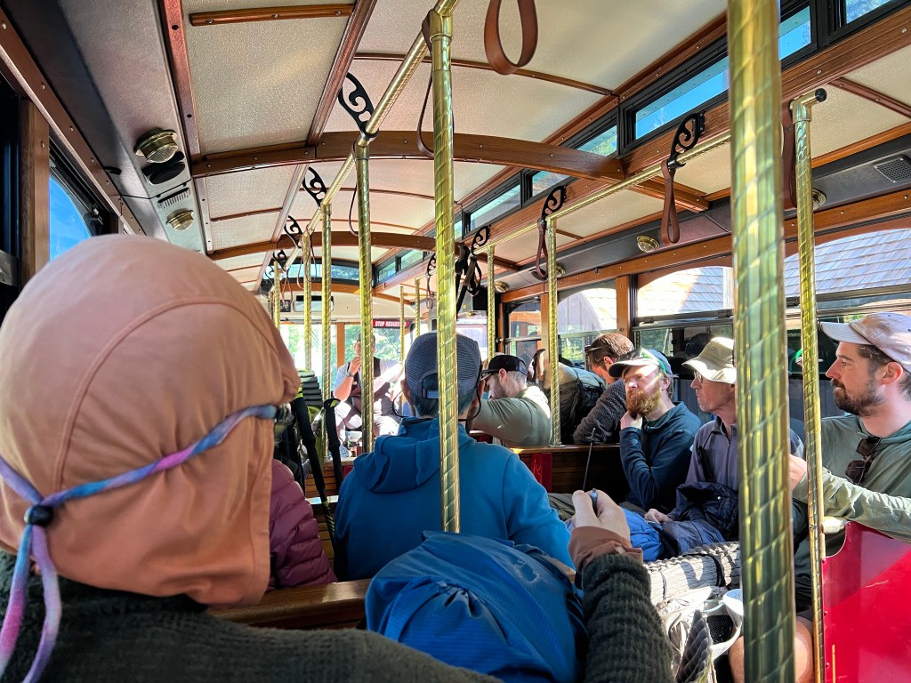 Départ de Mazama Village à 9h00 avec le « Trolley », direction de Crater Lake Lodge. Le Trolley ressemble beaucoup au « cable car » de San Francisco. Pour ceux qui n’ont jamais eu la chance de visiter cette ville, ce sont des wagons tirés par un câble sous terrain. C’est une très belle ville à visiter, malgré sa température fraîche, même en été. Comme dirait mon ami, dans cette ville, traine-toi un jacket.