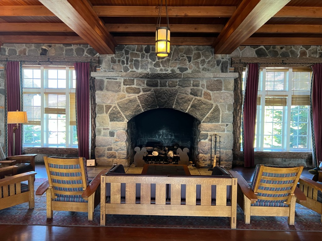 Revenons à Crater Lake. Notre 1er arrêt, le Lodge. Un très beau bâtiment avec un toiture de bardeaux de cèdre. L’intérieur est magnifique, il y a d’immenses foyers et les boiseries sont remarquables. C’est un endroit très luxueux et probablement hors de prix pour un Hiker. 2e arrêt après les nombreuses photos « kétaine » au bord du cliff, le « spigot ». Nous avons besoin d’eau pour le 20 prochain miles. L’eau est rare en Oregon.